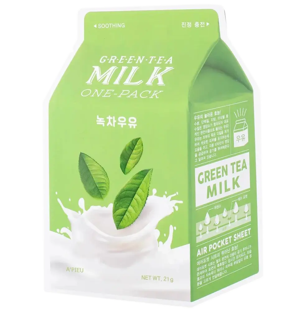 La Green Tea Milk One-Pack es una mascarilla facial en hoja diseñada para calmar e hidratar la piel sensible e irritada. Enriquecida con extracto de té verde y proteínas de leche, esta mascarilla nutre profundamente, mejora la elasticidad y proporciona un aspecto radiante al rostro.